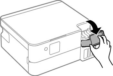 - Cierre la cubierta de la unidad de tanques de tinta y luego baje la unidad del escáner con las dos manos.