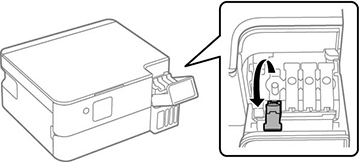 - Alinee la parte superior de la botella de tinta con el puerto de relleno y luego inserte la botella directamente en el puerto. La tinta fluye en el tanque.