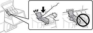 - Cuando guarde o transporte una botella de tinta después de abrirla, no incline la botella y no la someta a impactos o a cambios de temperatura. De lo contrario, la tinta se podría derramar aun si la tapa de la botella está bien cerrada. Mantenga la botella de tinta en posición vertical cuando esté apretando la tapa y tome medidas para que no se derrame la tinta cuando transporte la botella.