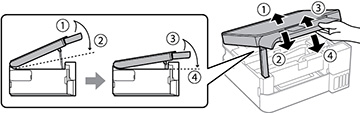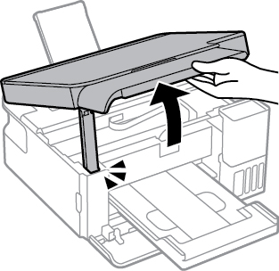 - Levante la unidad del escáner con las dos manos hasta que se trabe en su lugar.