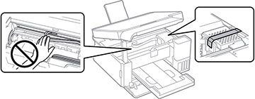 No coloque cinta adhesiva en el cable plano blanco que se encuentra en el interior del producto; de lo contrario, podría dañar el producto. - Compruebe que las tapas de los tanques de tinta estén bien cerradas y cierre la cubierta de la unidad de tanques de tinta.