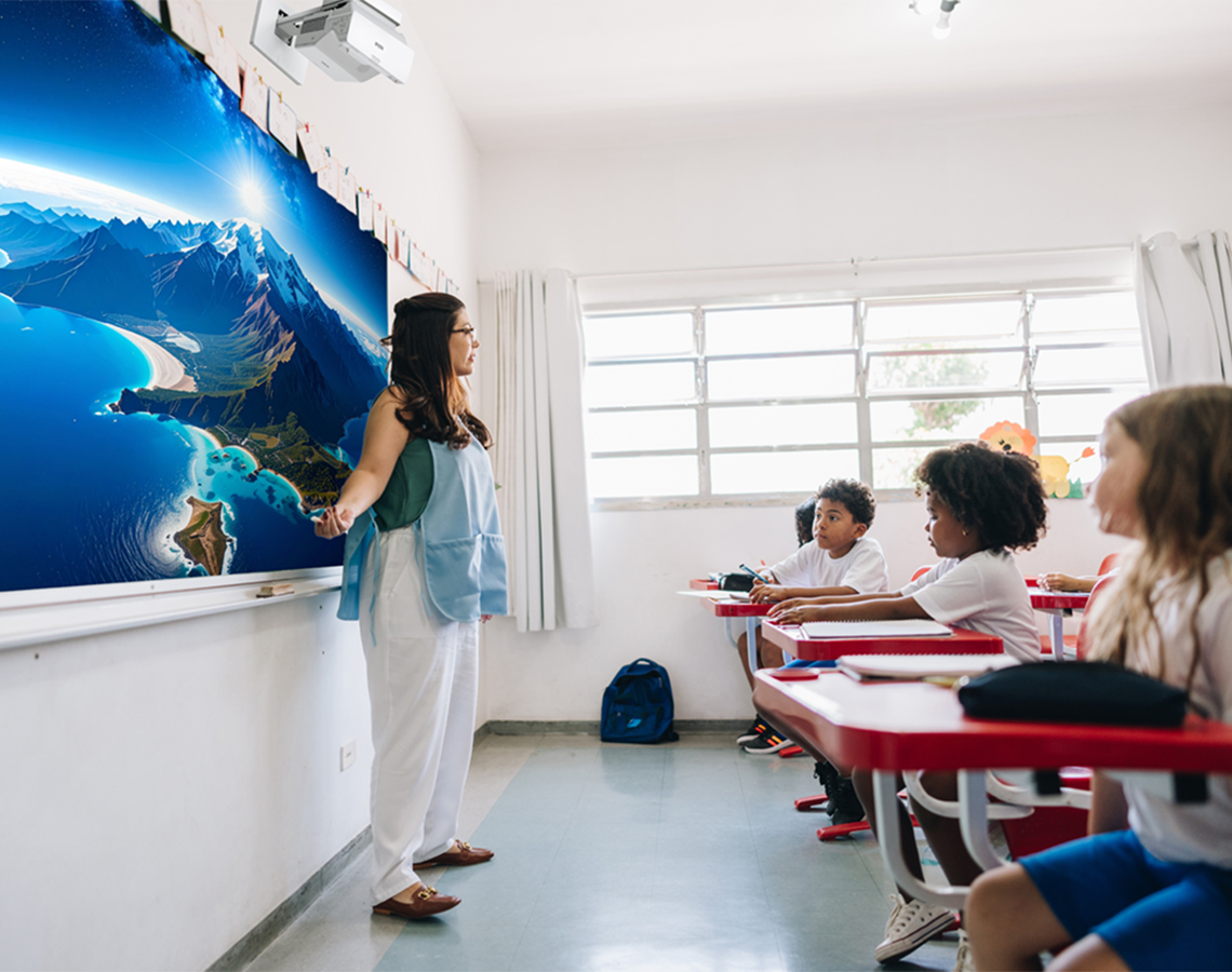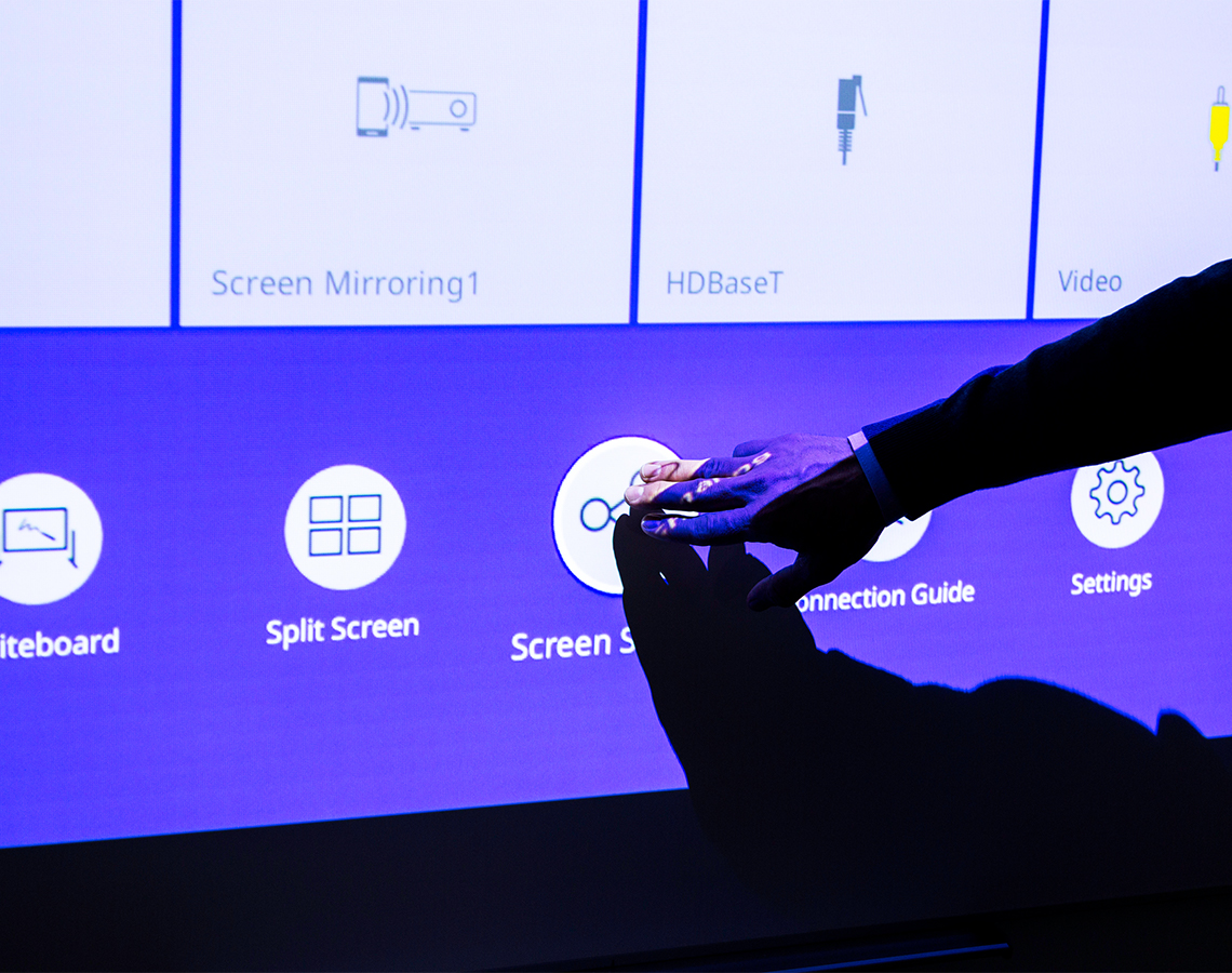 Con BrightLink® puede proyectar imágenes de hasta 120 pulgadas y ajustar el tamaño según sus necesidades. Además, obtiene una amplia superficie interactiva. En contraste, las pantallas planas cuentan con un tamaño fijo y presentan costos más elevados cuando se buscan dimensiones mayores.